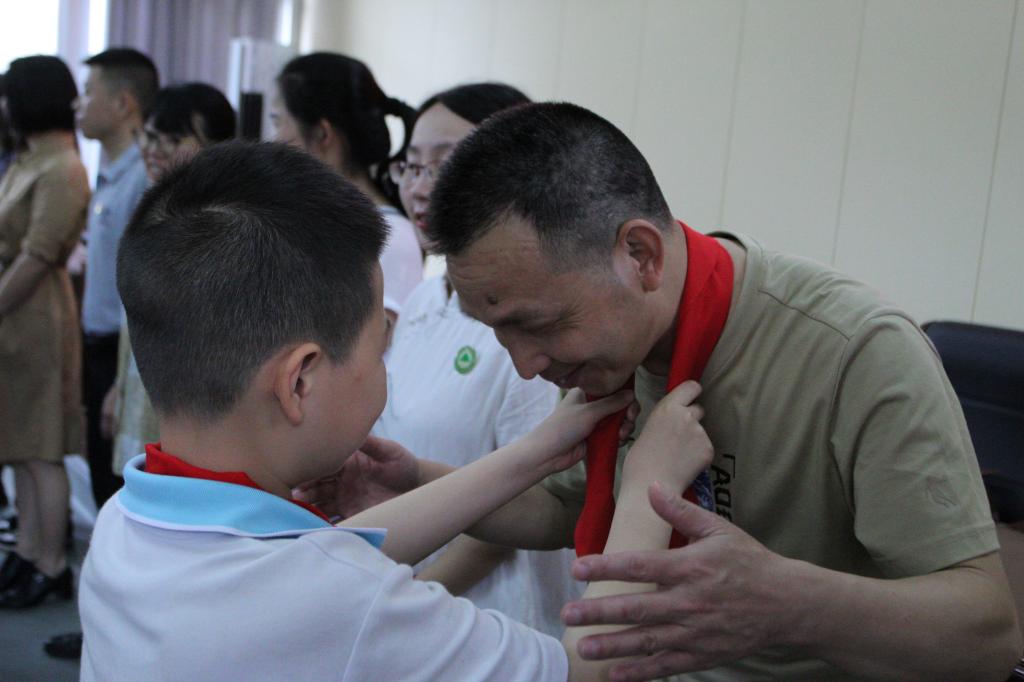 首先,南山镇中心小学开展了欢迎仪式,在仪式上,南山小学的少先队代表为老师们的到来表示欢迎,为他们带上了红领巾。