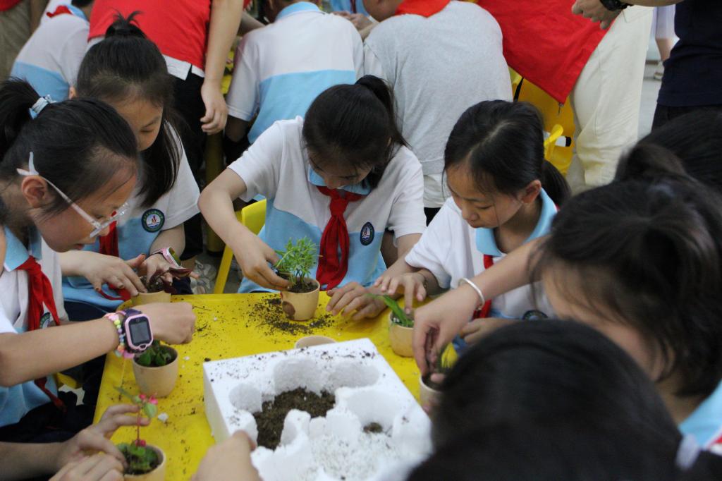 一颗颗新种植的小花苗在花盆中逐渐焕发出生机,通过自己亲身劳动获得的小朋友们脸上露出洋溢的笑容。花盆里种下的是不仅仅是一株小小的花苗,还有助于让孩子们从小树立起长远的生态文明建设的意识。
