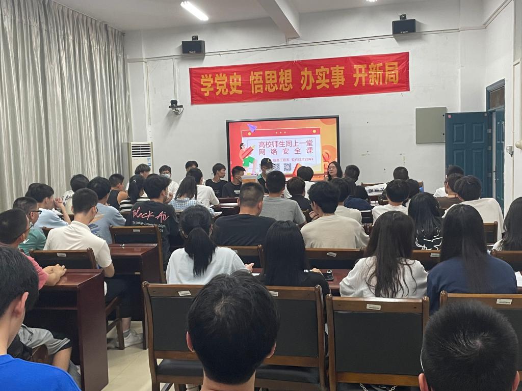 班会上,同学们通过观看“高校师生同上一堂网络安全课”视频学习了解网络安全知识、树立网络安全意识,各班级辅导员告诫同学们,没有网络安全,就没有国家安全。要坚守社会主义制度底线和国家利益底线,合理使用网络资源,不违法攻击网络系统、窃取各种秘密,积极监督举报各种危害网络安全的行为,推动网络空间安全发展。