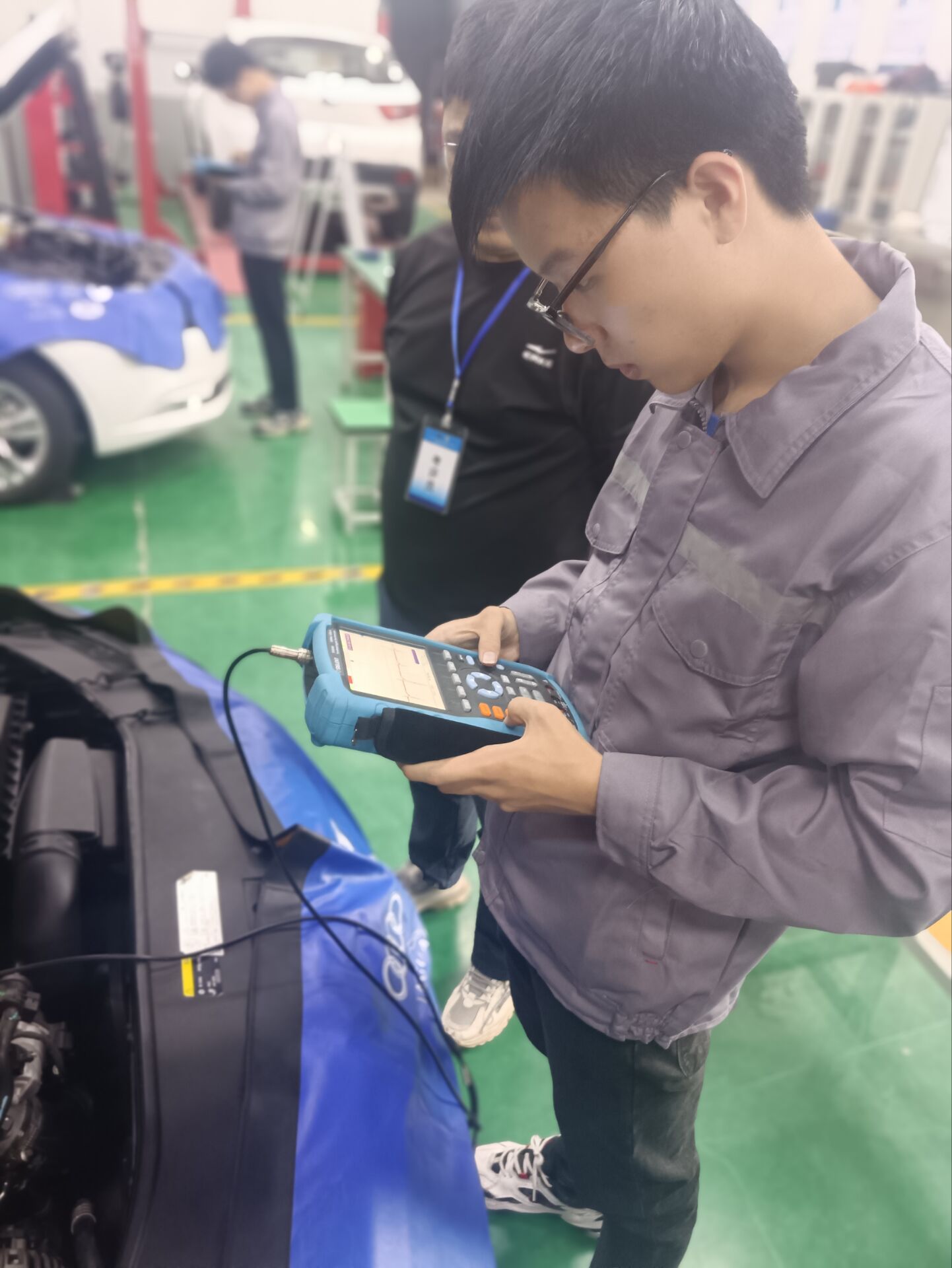 2022年10月29日至30日,信息工程系在汽车综合实训中心举行汽车专业领域1+X职业技能等级考试。本次考试采用实操考核方法,考试内容为汽车电子电器与空调舒适系统技术(中级),共分为电子控制电路检测与维修、起动与充电部件检测维修、电器与控制部件检测维修和空调与舒适部件检测维修四个考核项目,四项考核内容的平均成绩超过75分为合格。
