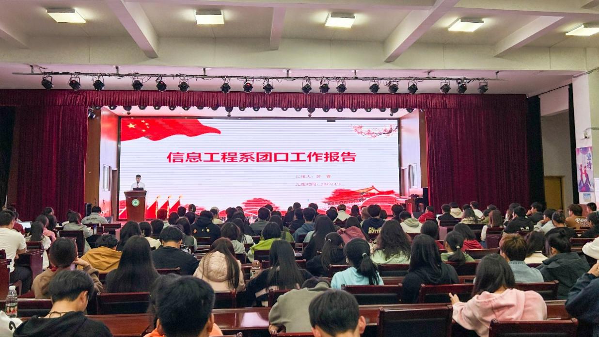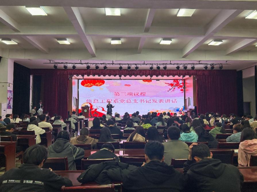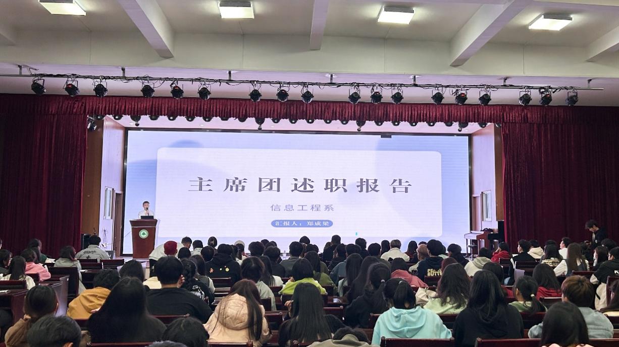 为进一步加强信息工程系两委会学生干部建设,提高两委会各部门工作的实效性、积极性,促进两委会组织工作制度化、规范化、系统化,发挥好两委会联系广大同学的桥梁和纽带作用,以崭新面貌迎接我校建校七十周年,信息工程系于3月6日晚7点在江南礼堂开展信息工程系2021级两委会学生干部中期述职报告会,信息工程系党总支书记、主任华建祥老师、党总支副书记叶文美老师、组织专员谢婉欣老师、学生科科长兼团总支书记吴文杰老师、教务科科长蔡尊煌老师、学生第一党支部书记郑燕丽老师、学生第二党支部书记陈雅佳老师及辅导员参加此次会议,本次会议由信息工程系两委会副主席张锦鹏主持。