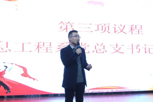 述职报告会结束后,系党总支书记、主任华建祥老师上台致辞,他对本届学生会全体干部、干事上学期的工作表示充分的肯定,对大家的辛勤付出表示衷心的感谢,并强调了学生干部要处理好学习和工作之间的关系,提高工作效率,提升自身专业素养,同时华书记希望学生干部们能够好好珍惜在两委会中的工作经历,争取实现更大的突破。华书记鼓励信息工程系学生干部们充分发挥先锋模范带头作用,着力打造一支思想素质过硬、综合能力过强的学生干部队伍,更好地服务学院、服务系部、服务广大同学。