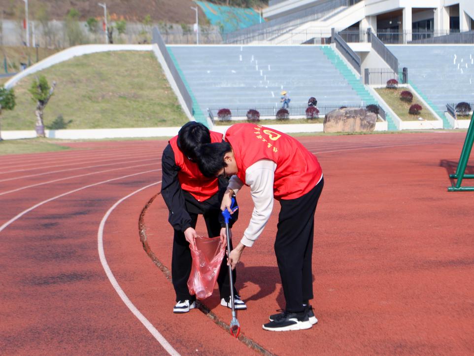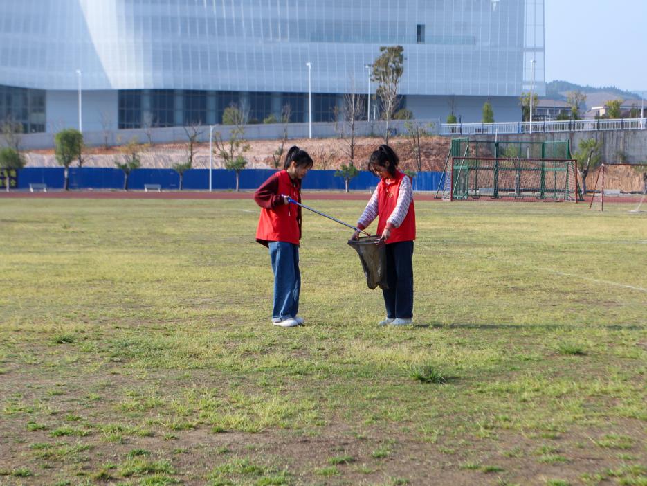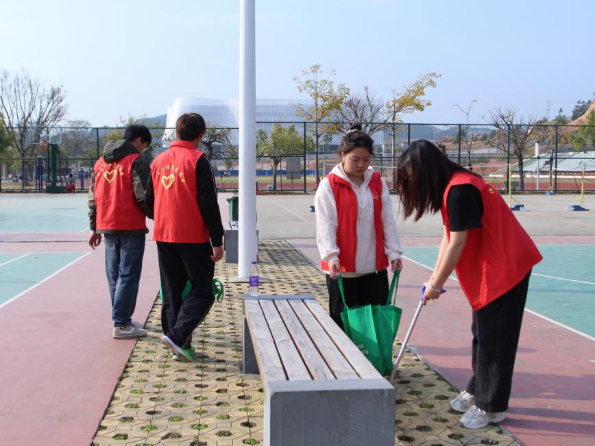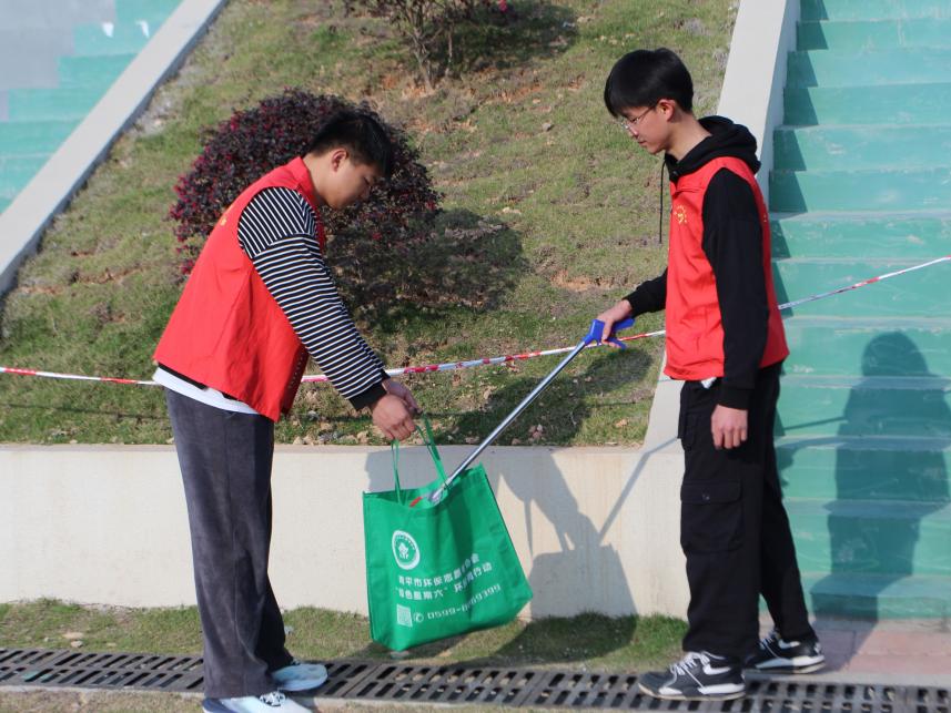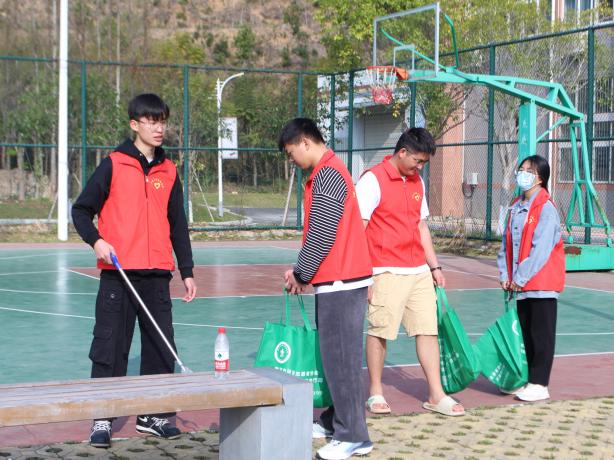 志愿者们铆足干劲,不怕脏不怕累,分头进行环境清洁整治工作,认真清扫了校园周边隐藏着的烟头、塑料袋和杂草等垃圾,捡拾草丛内外的白色垃圾,每个志愿者都自觉承担起任务,分工明确、齐心协力,经过同学们的辛勤劳动,校园环境干净整洁,焕然一新。