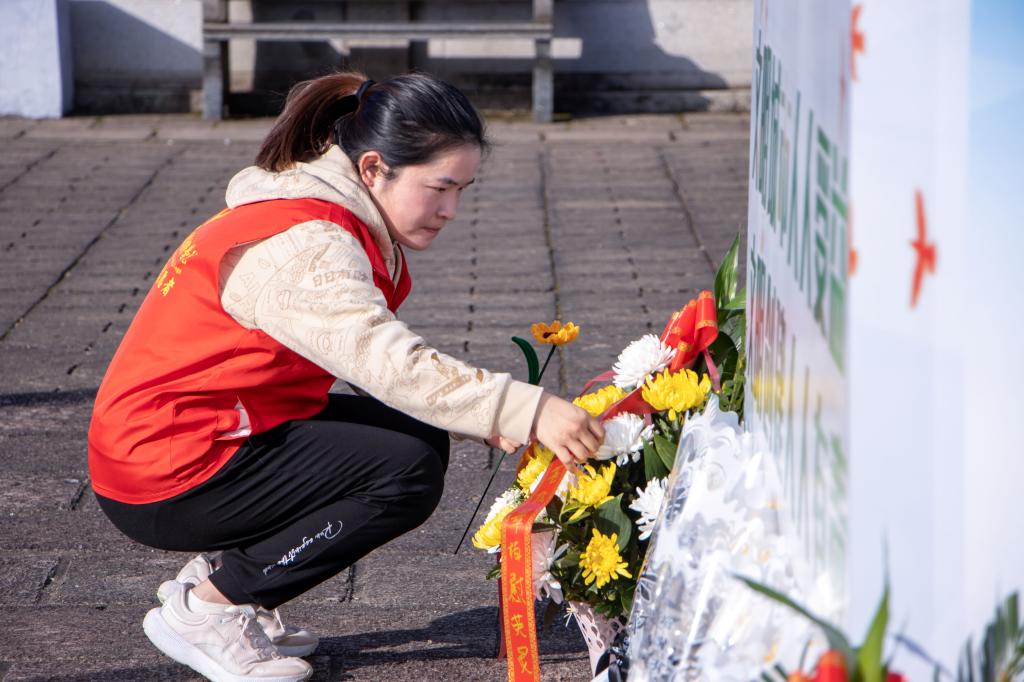 随后,全体师生列队有序敬献亲手折叠的向日葵和千纸鹤,瞻仰烈士纪念碑,并向雕像行鞠躬礼、绕行一圈,寄托师生们对先烈崇高的敬意、深切的缅怀。