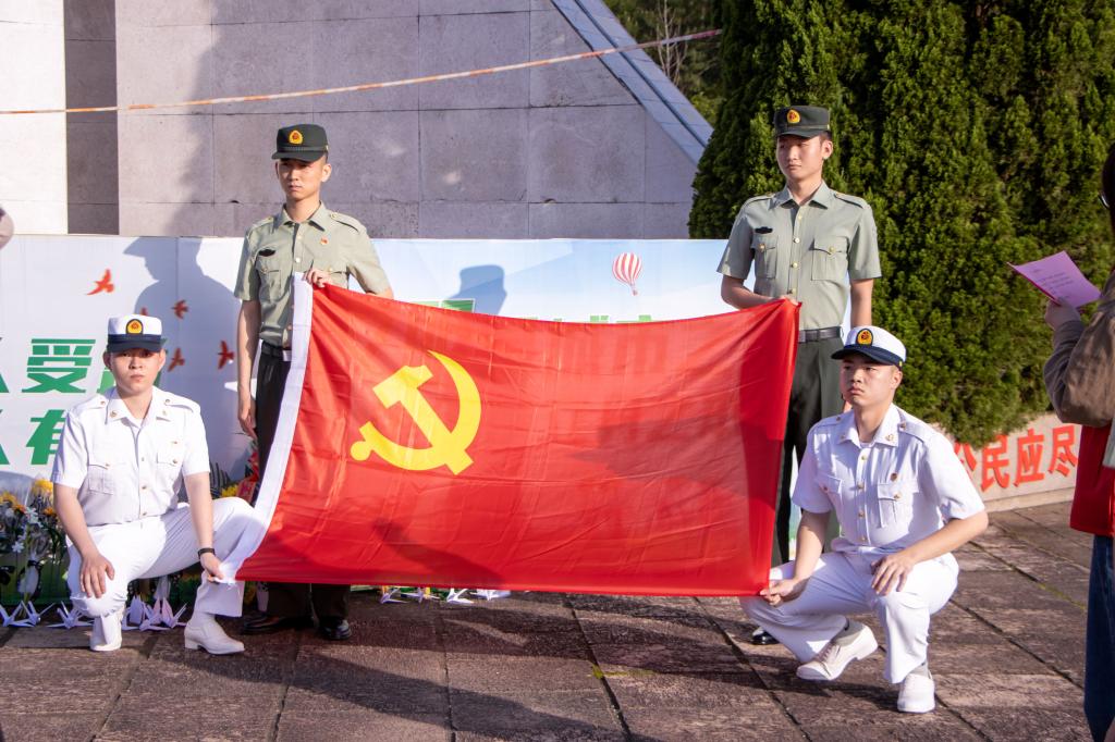 庄严肃穆的革命烈士纪念碑前,全体党员佩戴党员徽章,整齐列队,面向鲜红的党旗,在谢婉欣老师的带领下,高举右拳,重温入党誓词,以铮铮誓言表达向革命先烈学习的决心,铿锵的话语,是信仰的力量,是奋斗的宣言。