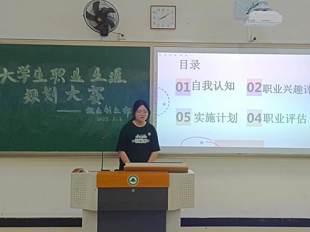 本次比赛分为PPT展示、现场答辩两个环节,上场的选手基于自己的职业生涯规划书准备相应的职业生涯演讲PPT,以饱满的状态上台展示自己的职业生涯规划,比赛过程中,参赛选手在规定的时间内结合环境分析、就业形势、个人意愿等方面阐述自己的职业生涯规划。