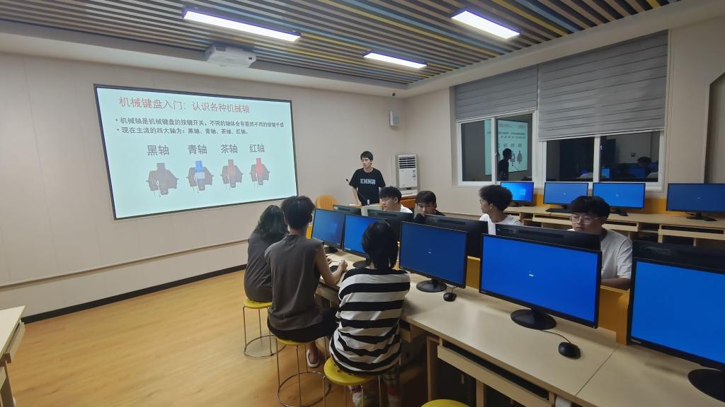 计算机协会于5月11日在实训三403开展了本学期计算机协会社团指导活动,本期指导内容先后围绕机械键盘的成色,材质,机械轴,键帽技术等进行。机械键盘每个按键都由独立的开关(又称“轴”)控制闭合,按键音量大,灵敏度高,适于游戏、办公等场景。根据“轴”的种类划分为黑轴机械键盘、红轴机械键盘、青轴机械键盘、茶轴机械以及白轴机械键盘五类机械键盘,促使本系同学进一步提高对机械键盘的了解,为同学普及机械键盘知识。