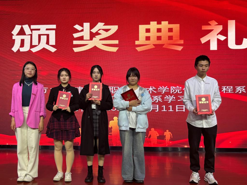 系部老师为获奖选手颁发了证书和奖品,并合影留念。
