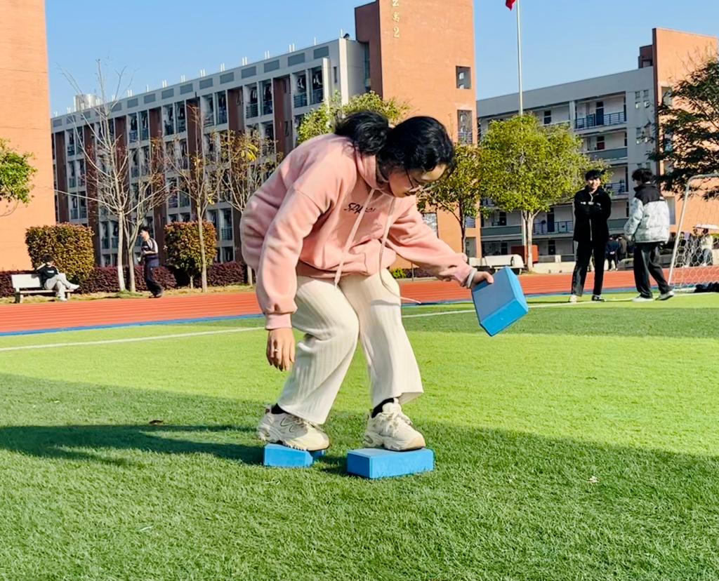 “三砖交替・足不沾地”项目充满了趣味性与挑战性。参赛选手们需要利用三块砖头交替前行,双脚不能直接接触地面,这不仅考验了选手们的平衡能力,更需要他们具备清晰的策略规划。比赛过程中,选手们小心翼翼地移动砖头,一步一个脚印,现场气氛紧张又欢乐。有的选手在前进过程中险些失误,但凭借着敏捷的反应迅速调整,赢得了观众们的阵阵掌声。