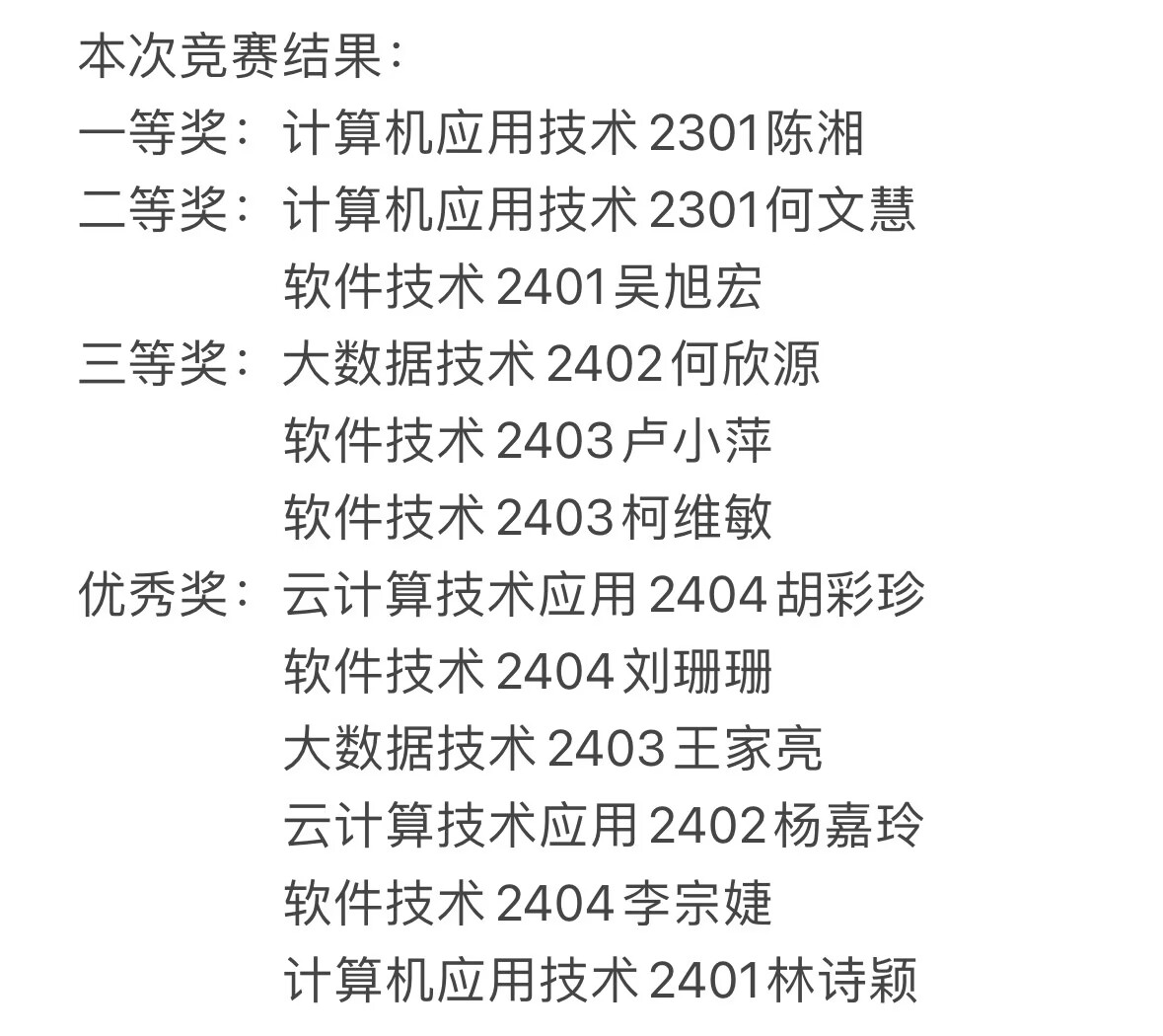 经过激烈角逐,最终评选出一等奖 1 名、二等奖 2 名、三等奖 3 名及优秀奖 6 名,具体名单如下: