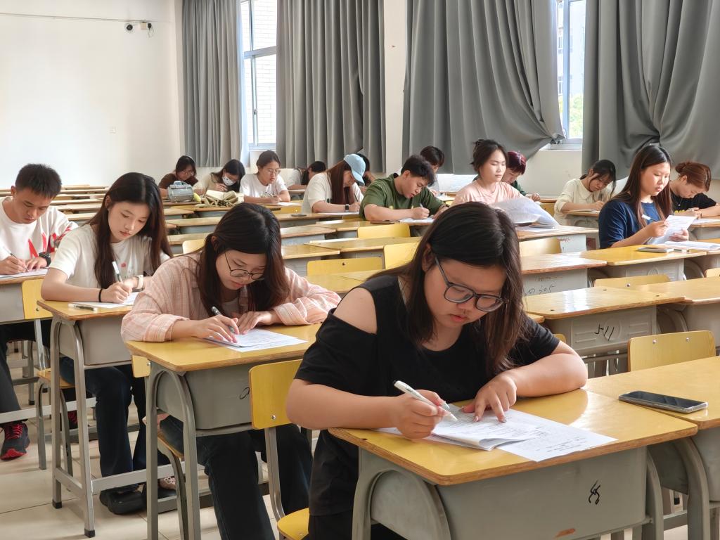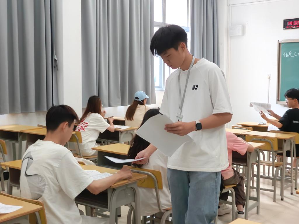本次系赛严格按照学校通知要求,采用线下闭卷答题形式,以 100 分满分试卷全面考查学生理论素养。试卷包含 80 道单选、多选、判断等题型,聚焦高校思想政治理论课 “马工程” 教材核心内容,涵盖党的二十大及二十届三中全会精神、《习近平著作选读》《论党的自我革命》等重要著作,同时融入福建地方特色文化如朱子文化、海洋文化等内容,兼具理论深度与地域特色。60分钟的答题过程中,信工学子们全神贯注、从容应答,笔尖划过试卷的沙沙声与偶尔的蹙眉沉思,尽显扎实的理论功底与严谨的治学态度。监考教师严格执行考场纪律,确保比赛公平公正、秩序井然。