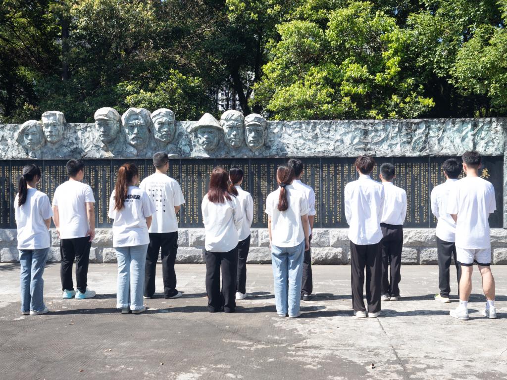 “我志愿加入中国共产党,拥护党的纲领……”纪念碑下,党员队员面向鲜红党旗庄严宣誓,铿锵誓言回荡在陵园上空,既是对入党初心的回望,更是对时代使命的承诺。带队教师吴建森表示:“重温入党誓词,是让青年学子从先烈精神中汲取奋进力量的重要方式。作为新时代青年,更要将个人理想融入国家发展大局,让红色基因代代相传。”