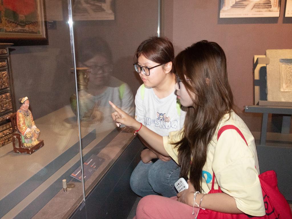 为系统梳理闽台文化脉络,实践队分板块深耕博物馆展陈:从德化白瓷在台湾的流传轨迹,看工艺技艺的跨海传承;从闽南红砖厝与台湾番仔楼的榫卯共性,品建筑美学的同源基因;从妈祖信仰的两岸共祀,悟精神信仰的一脉相承;从婚俗中“同心结”的共通寓意,感民俗文化的血脉相连。队员们纷纷表示:“每一处展品都是闽台‘亲上亲’的见证,让我们对‘中华文化多元一体’有了更鲜活的理解。”