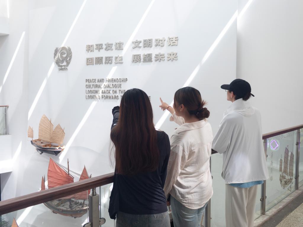 走进泉州海外交通史博物馆,实践队以“海上丝绸之路”为课堂,深挖闽台在海洋文明中的共生记忆。作为古代“东方第一大港”的泉州与“海上中转站”的台湾,在丝路贸易中始终紧密相连——队员们观察宋代古船的龙骨结构,惊叹于闽台先民共同优化的造船技艺;分析外销瓷器上闽台共通的吉祥纹样,读懂两岸工匠的审美共鸣;解读航海日志中的气象记录,感悟“敬畏自然、和谐共生”的生态智慧,这也与团队践行的绿色发展理念形成跨越时空的呼应。“从历史中走来,闽台的开放基因从未中断。”带队老师说,“这份跨越海峡的协作精神,正是今天我们推动两岸融合发展的宝贵财富。”