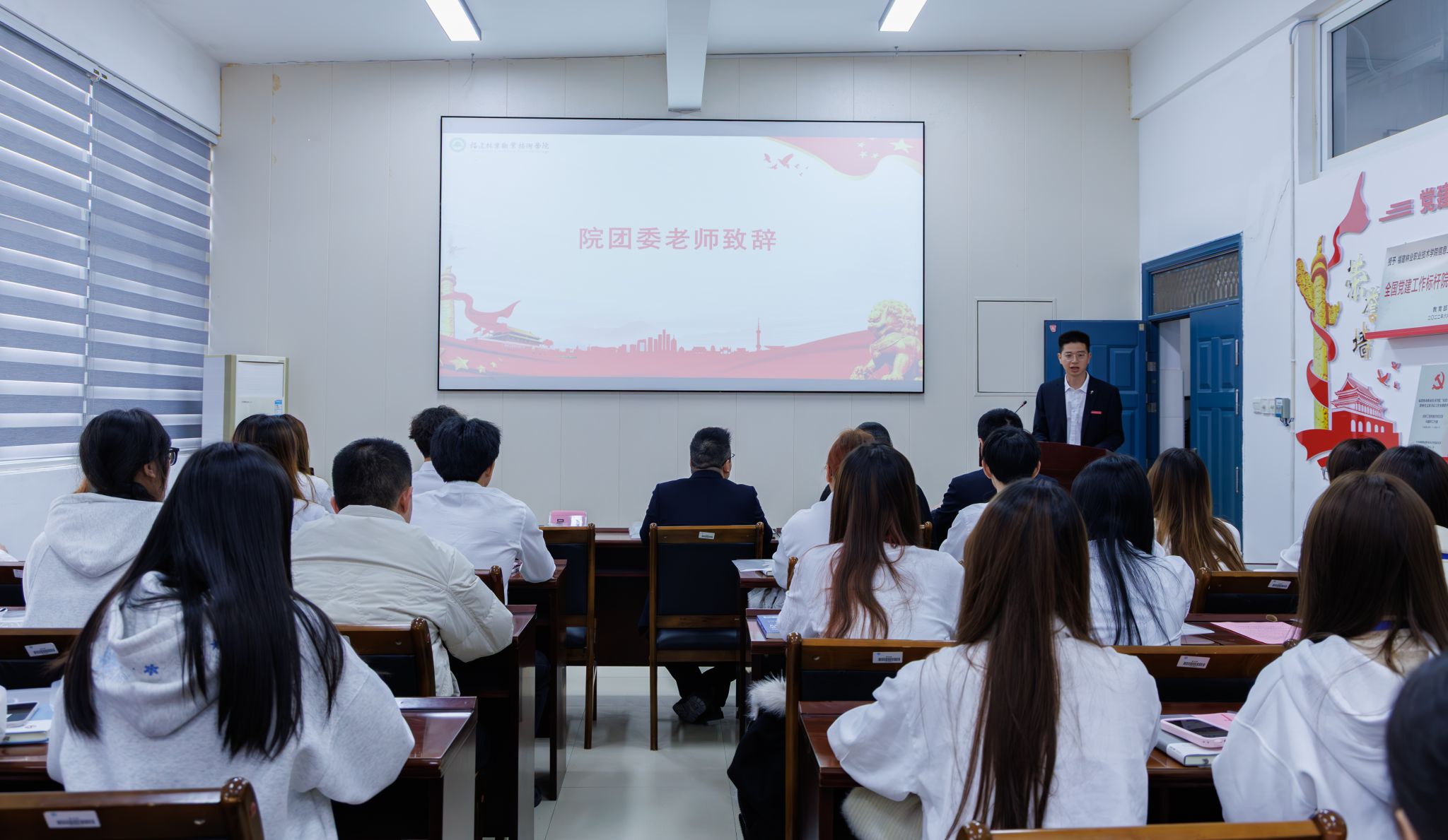 为深入学习贯彻党的二十大精神和习近平总书记关于青年工作的重要思想,凝聚青年力量、擘画发展蓝图,2025年12月19日下午15:30,共青团福建林业职业技术学院信息工程系第二次团员代表大会在信工楼408会议室隆重召开。院团委副书记(主持工作)吴旻,信息工程系党总支书记、主任华建祥,信息工程系专职组织员谢婉欣,学生科长吴文杰以及50名学生代表出席本次大会,本次会议由吴文杰老师主持。