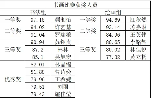 一等奖颜湘怡 二等奖许艺慧 二等奖罗瑞粮