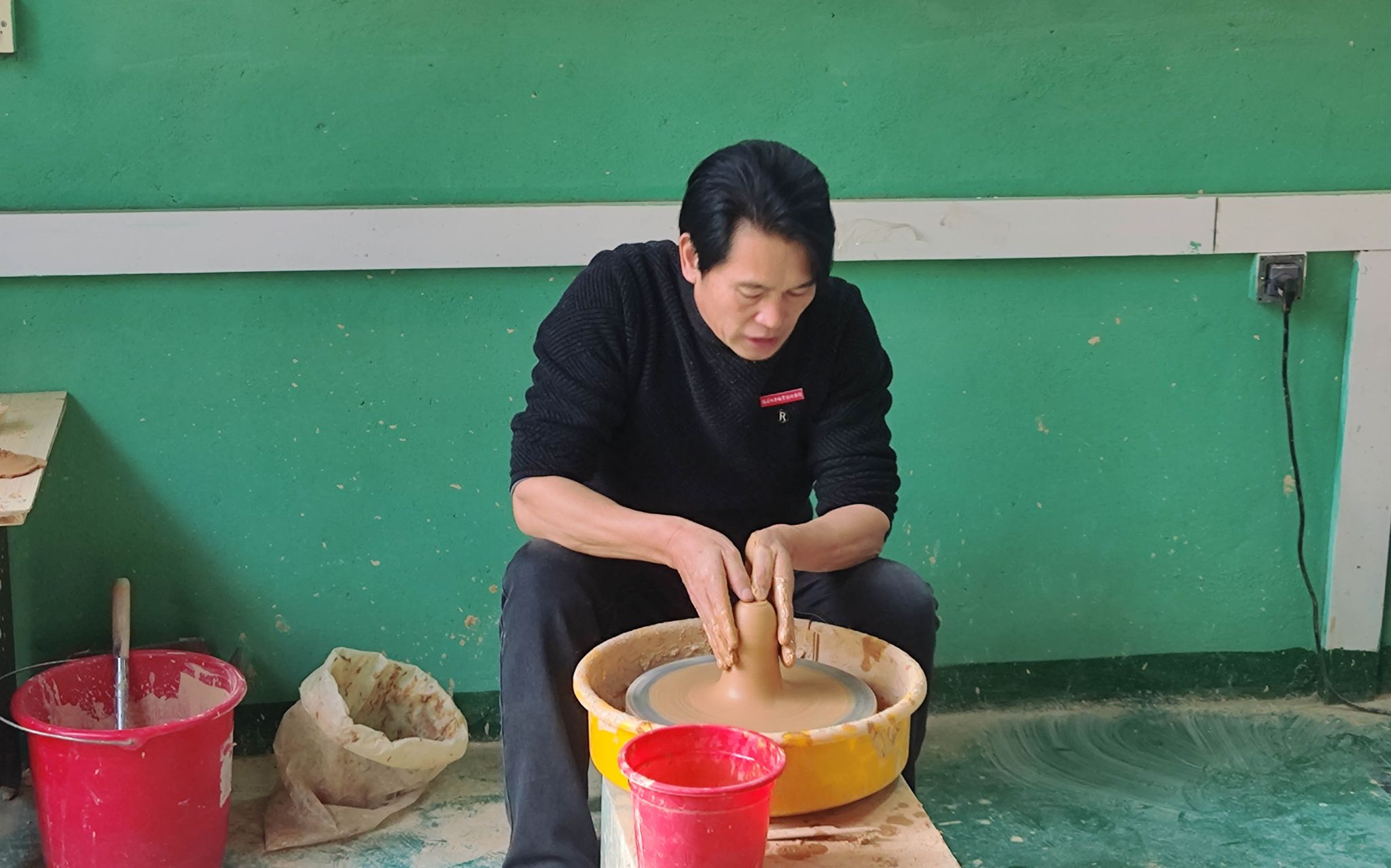 在实践体验环节,应德仁老师现场示范拉坯技艺 —— 湿润的泥料置于拉坯机上,随着机器匀速转动,经其双手娴熟提拉、按压、塑形,原本平平无奇的泥坯逐渐升起、舒展,最终变成规整的瓶、碗、罐雏形,行云流水的操作引得同学们阵阵惊叹。