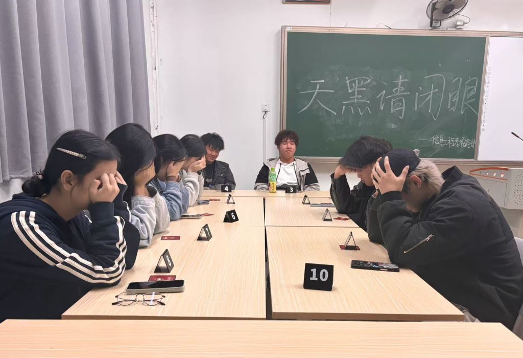 为丰富学生校园文化生活,锻炼学生语言表达与逻辑思维能力,2025年11月18日18:00,信息工程系宿管部在教学楼205、207、211教室举办“天黑请闭眼”校园狼人杀终极对决活动,全系狼人杀爱好者踊跃参与,共同度过了一段充满欢乐与挑战的时光。