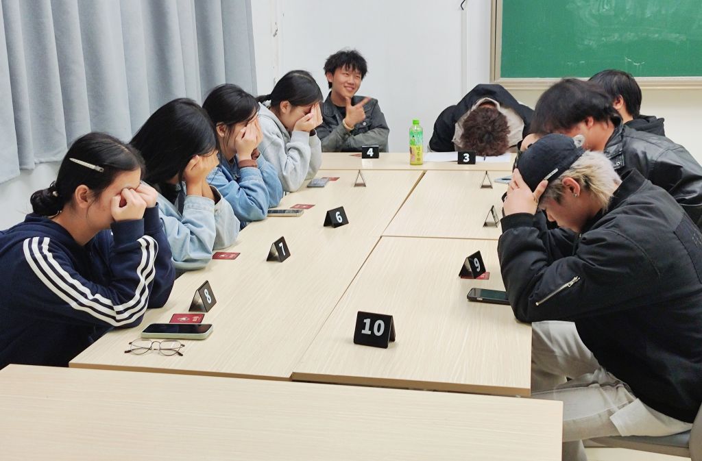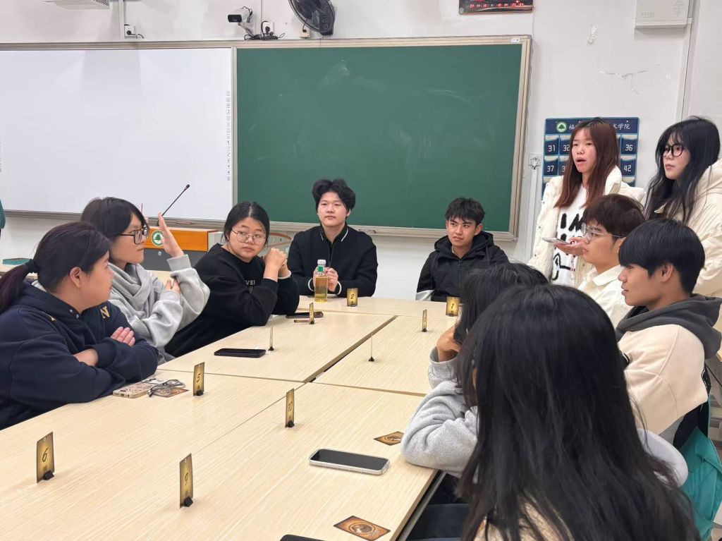 活动过程中,原本陌生的同学因共同爱好迅速熟络,教室中欢声笑语不断。工作人员穿梭于各教室之间,及时补充道具、协调场次,全程保障了活动的有序推进。休息间隙,同学们围坐复盘,激烈讨论中交织着恍然大悟的惊喜与轻松愉快的笑声。