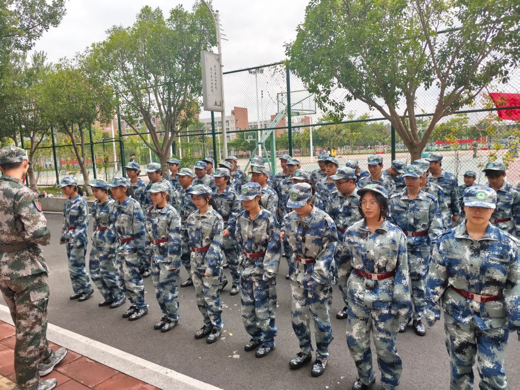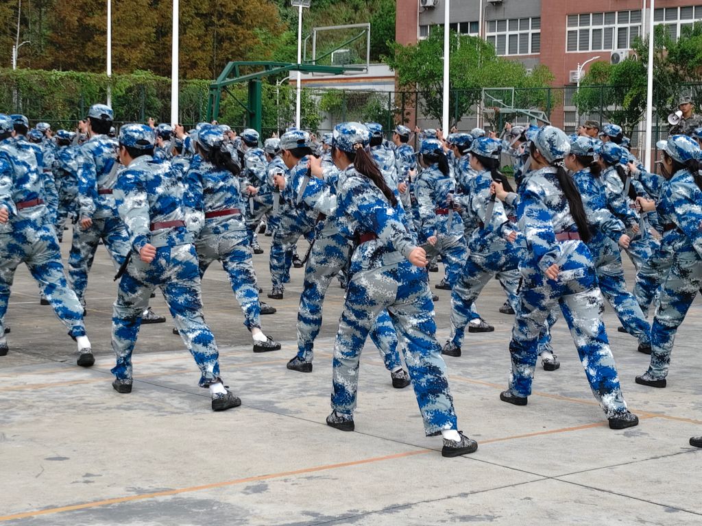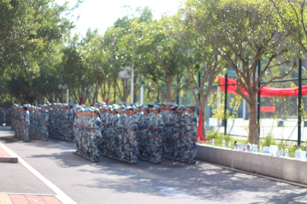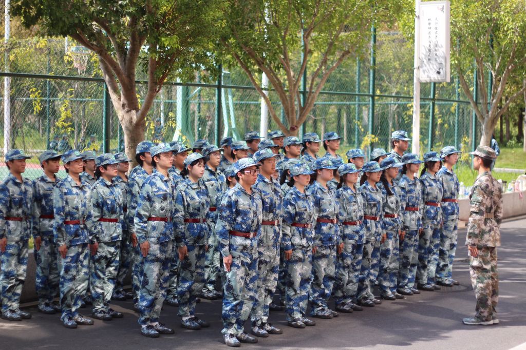 身着蓝白迷彩的学子们在球场列阵,身姿挺拔如松。他们以整齐的队列诠释军训的纪律性,在绿意环绕中迈出青春正步,于汗水与坚持里锻造担当,书写校园军训中关于集体与成长的铿锵篇章。