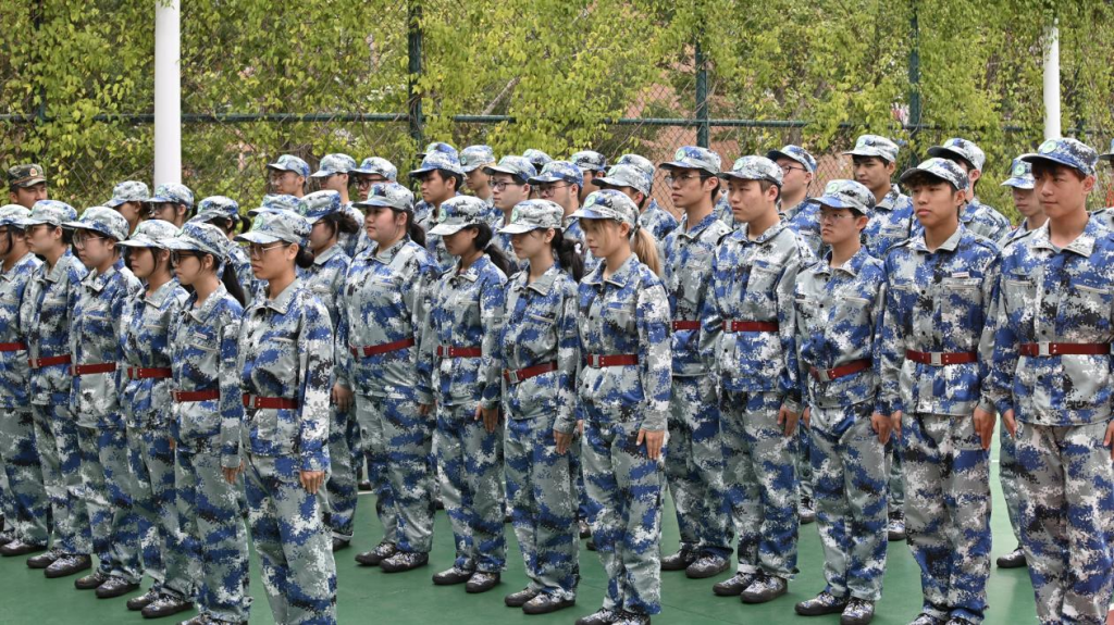 大一学子身着迷彩,在阳光下站成挺拔方阵,身姿端正如松,以标准军姿开启军训历练,彰显青春的坚毅与担当。