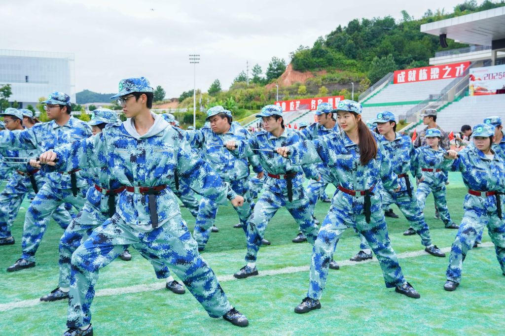 图为军训刺杀操训练场景:学子们在训练中展现出“快、准、狠”的刺杀动作,喊杀声震天。这不仅是军事技能的操练,更传承了我军“刺刀见红”的战斗精神,磨砺青年勇敢顽强的作风,在一招一式中淬炼担当,彰显新时代青年的血性与锐气。