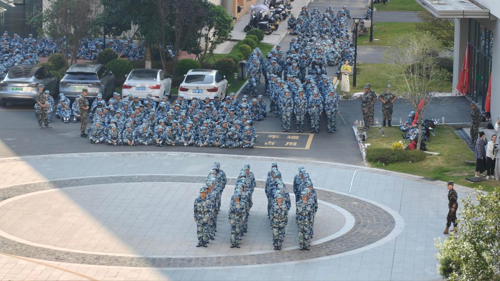 介绍:一群身着迷彩的同学在校园道路上练拳术,动作整齐有劲儿。军训的日子里,他们在汗水里蜕变成更好的自己,这充满朝气的画面,就是青春该有的模样~