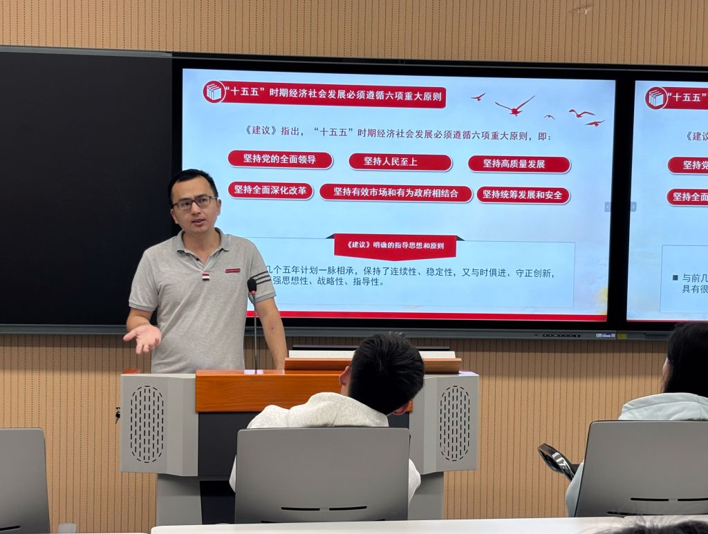 团课伊始,吴文杰以“全会精神与青年未来息息相关”为切入点,摒弃空洞理论说教,聚焦“机遇”与“行动”两大核心,为在场干部深入解读二十届四中全会关键部署。他指出,全会提出的“统筹教育强国、科技强国、人才强国建设”“发展新质生产力”等战略,既是国家发展的宏伟蓝图,更是信息工程系学子学业规划、职业选择的重要指引,为青年成长搭建了广阔舞台。