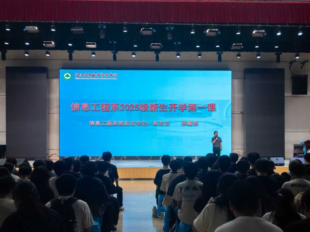 为帮助2025 级新生快速适应大学生活、明确学习目标、传承校园文化,9月15日晚19时,信息工程系在江南校区体育馆举行新生入学教育之“开学第一课”。信息工程系党总支书记、系主任华建祥担任主讲人,系部2025级全体新生及2022级接轨生到场参加,共同开启大学“第一课”。