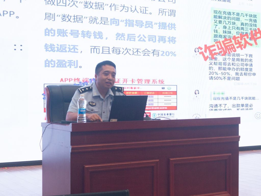 教育会上,夏道派出所民警结合真实案例,围绕五大核心安全领域展开细致讲解:民警重点剖析校园贷、电信诈骗等常见陷阱,通过拆解“低利息、无抵押”“刷单返利高盈利”等虚假宣传话术,提醒新生警惕诱惑,守护个人财产安全;在禁毒教育环节,民警通过展示毒品模型、剖析涉毒违法案例,让新生直观认识新型毒品的伪装形式与严重危害,帮助树立“珍爱生命、远离毒品”的坚定信念;在网络安全领域,针对新生常用的社交、购物等平台,民警讲解个人信息保护、网络谣言辨别、不良信息抵制等实用技巧,引导新生养成文明、健康、安全的用网习惯;在消防安全部分,民警现场演示灭火器操作方法,详细普及火灾预防要点、初期火灾处置步骤及逃生疏散路线,确保新生掌握可操作的消防安全技能;在治安法治教育环节,民警结合《中华人民共和国治安管理处罚法》相关条款,明确校园内打架斗殴、高空抛物、违规用电等违法行为的法律后果,强化新生“知法、懂法、守法”的法治意识。