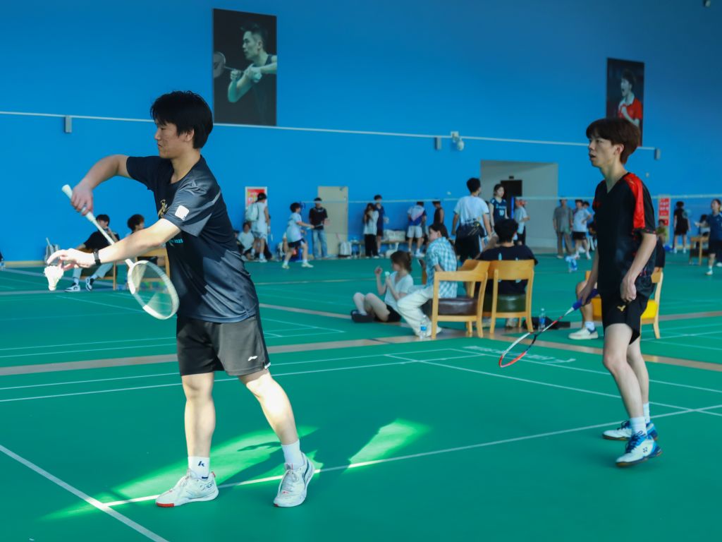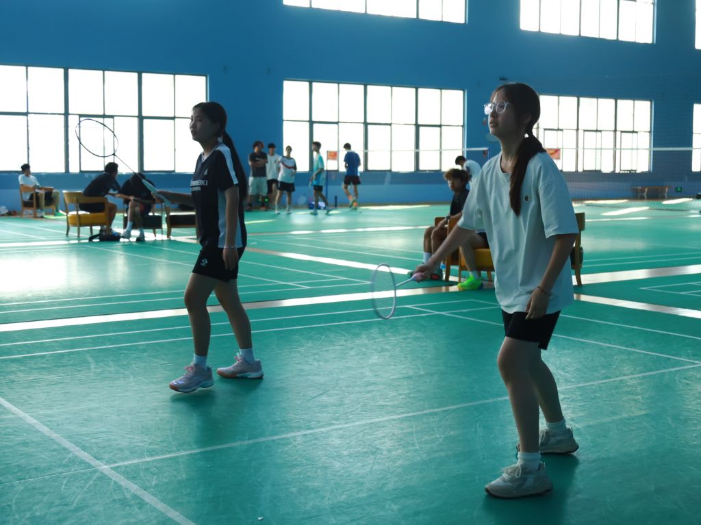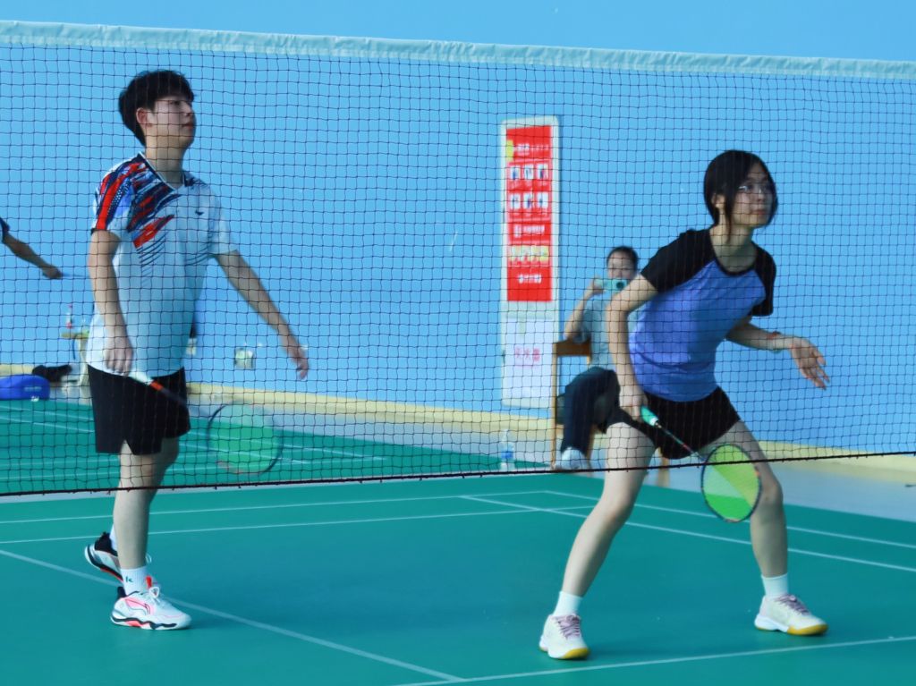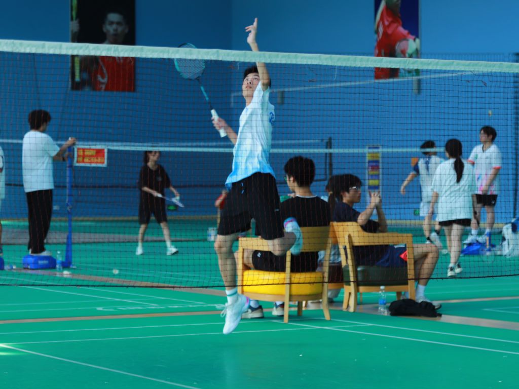 随着一声清脆的哨响,比赛正式拉开战幕。洁白的羽毛球瞬间化作“银箭”,在球网两侧来回穿梭;拍面与羽球碰撞的“啪” 声此起彼伏,像激昂的鼓点叩击着现场节奏。选手们各展所长:有的腾空跃起,手臂拉满如弓,一记 “雷霆重杀”让羽球直坠对手场地;有的俯身贴地,指尖轻挑,让羽球擦着网带优雅过线;还有的凭借灵活步法巧妙周旋,在攻防转换间寻找得分良机。汗水顺着眉梢滑落,却挡不住眼中的专注;笑声与喝彩在赛场回荡,让竞技的紧张多了几分青春的鲜活——跃动的身影、挥舞的球拍、翻飞的白羽,共同谱写出一曲热血的青春乐章。