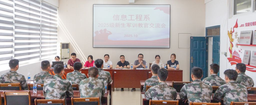 为扎实推进2025级新生军训筹备工作,进一步明确训练目标、理顺协作机制、筑牢安全训练防线,10月11日上午11:00,信息工程系在信工楼408会议室组织召开2025级新生军训教官见面交流会。信息工程系党总支书记、主任华建祥,党总支副书记叶文美,学生科科长兼团总支书记吴文杰,以及新生辅导员林珍、丁丹、陈晞、范秋叶、吴建森,与2025级全体新生军训教官共同参会。