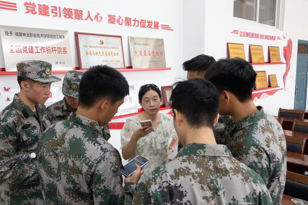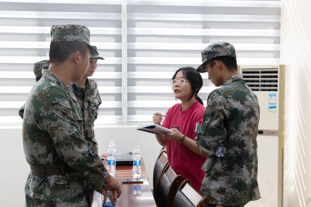 图为林珍辅导员与新生教官谈话