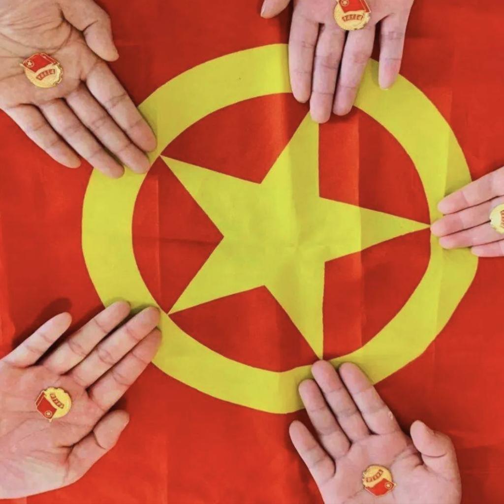团旗团徽,是共青团的象征与标志。在五四精神的感召下,青年们与团旗团徽同框,是对先辈精神的敬仰与传承。五四薪火照亮前行道路,当代青年肩负时代使命,从先辈手中接过接力棒,以奋斗为笔,在时代浪潮中书写担当,以青春之我,创建青春之国家、青春之民族,让五四精神在新时代绽放新光彩。