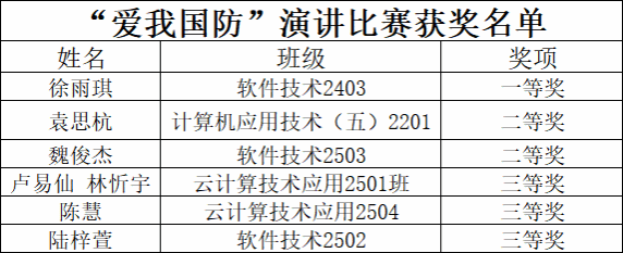 本次“爱我国防”主题演讲比赛,既是学子展示自我、提升能力的平台,更是一堂生动的国防教育实践课。通过参与和观摩,同学们深化了国防认知,进一步增强了忧患意识与责任担当,更加自觉地将个人理想融入国家发展大局,爱国热情与家国情怀得到进一步厚植,同时也在表达与分享中提升了思辨和语言表达能力。