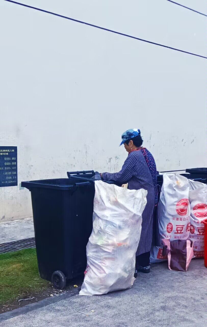 作品定格志愿者清理街巷垃圾的场景,以实际行动践行低碳环保理念。