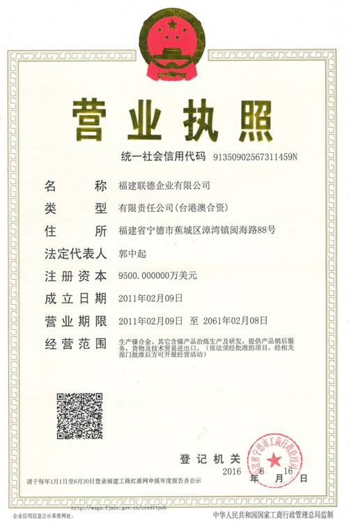 福建联德企业有限公司成立于2011年9月,是一家镍合金生产专业的现代化镍铁公司,由世界排名前五的不锈钢生产企业——台湾义联集团所属烨联钢铁股份有限公司投资建设。