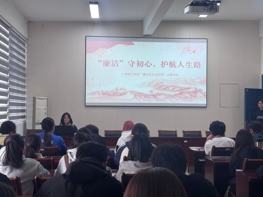 为深入贯彻新时代廉洁文化建设要求,落实立德树人根本任务,引导青年学子树立“廉洁修身、诚信治学”的价值理念,将廉洁种子根植青春心田,2025年11月28日,信息工程系组织全系各班级开展廉洁文化教育主题班会,以多样化形式让廉洁教育入脑入心,为营造风清气正的校园环境注入青春力量。