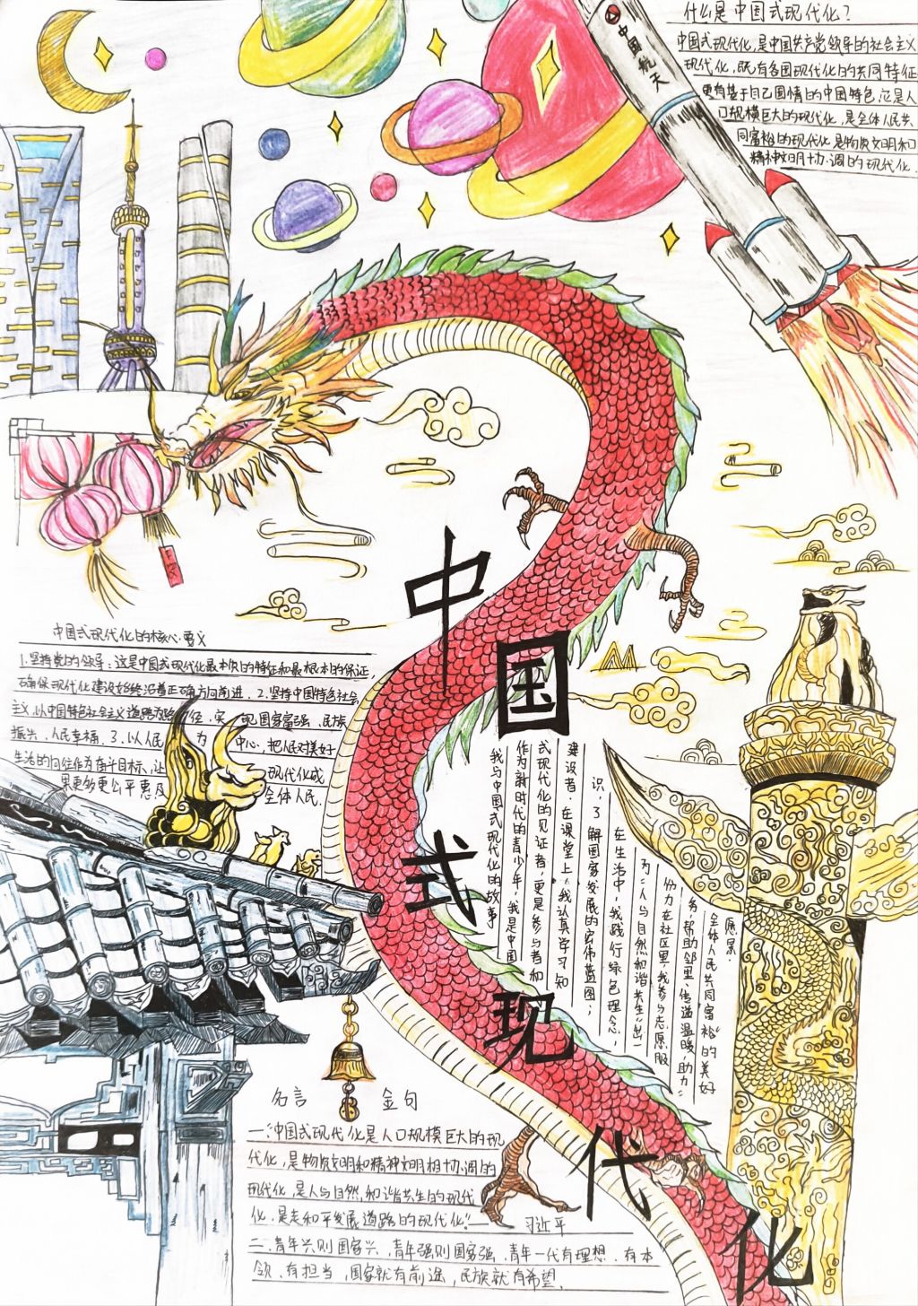 班会后,同学们以手抄报为载体,用文字与画笔勾勒对家国发展的期盼,作品丰富多彩,以下为部分同学的优秀手抄报作品展示: