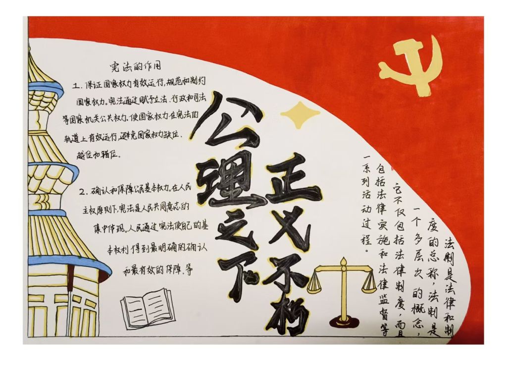 班会后,同学们以手抄报为载体,梳理法律知识、抒发法治感悟,将“知法、守法、用法”的理念转化为具体行动。以下为部分优秀手抄报作品展示: