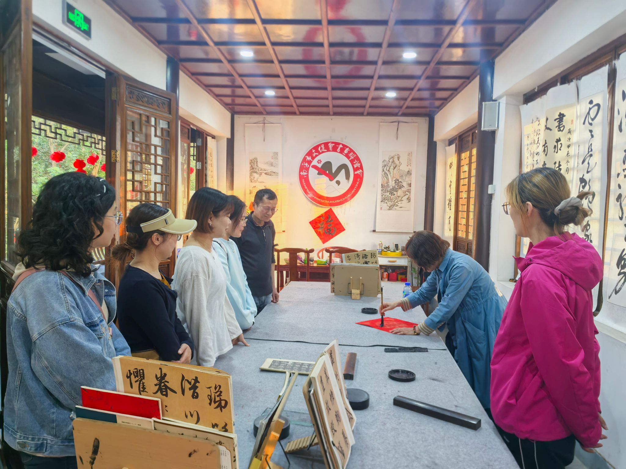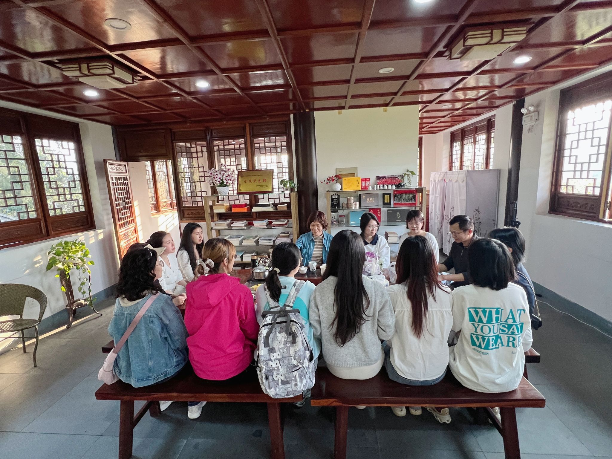 登高后,大家走进坐落于九峰山的南平市文化交流促进会,开展沉浸式文化交流体验。促进会狄秘书长详细介绍了促进会的发展理念、文化使命与工作成果,协会致力于挖掘朱子理学、闽越文化等地域特色,通过学术研讨、非遗展演等形式让文化“活起来”。
