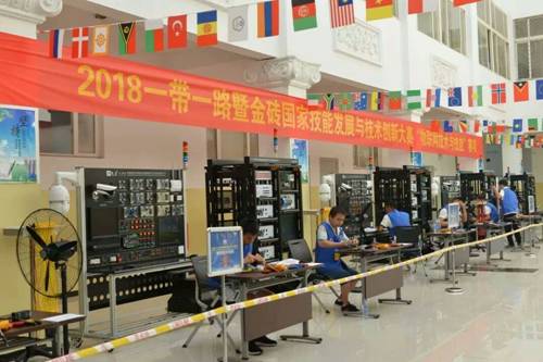 据悉,2018一带一路暨金砖国家技能发展与技术创新大赛闭幕赛赛项由金砖国家工商理事会(BRICS BC)主办,廊坊职业技术学院承办。各赛项从筹备到决赛,经过层层选拔,最终来自中国、南非、俄罗斯、越南、德国等150支中外参赛队,约500余名中外技能选手参加了各项技能的巅峰对决。此次闭幕赛包括物联网技术与技能、工业机器人控制与应用、数控多轴加工等多个赛项。