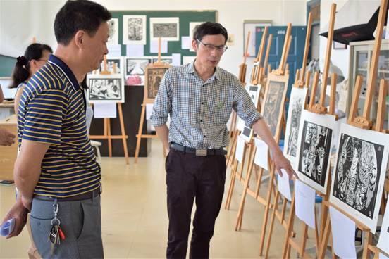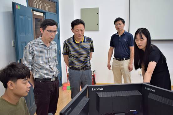 自动化工程系2019年技能文化活动月大赛即将拉开帷幕,为鼓舞选手士气,6月4日下午三点,自动化工程系党总支书记吴奇镇、系主任谢金生、党政办主任黄立靖视察了计算机网络应用、信息安全管理与评估、传统木刻板画、Flash动画制作、山海艺人木材雕刻等赛项小组的训练情况,看望了正在紧张集训中的选手和指导教师团队。