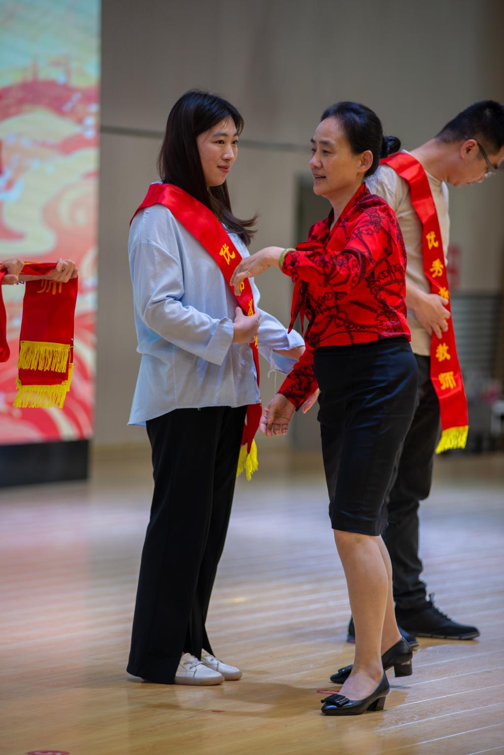随后,院学生部部长蔡敏老师、院团委副书记雷栩艺老师分别为获得2023年省技能大赛获奖教师和学生绶带。