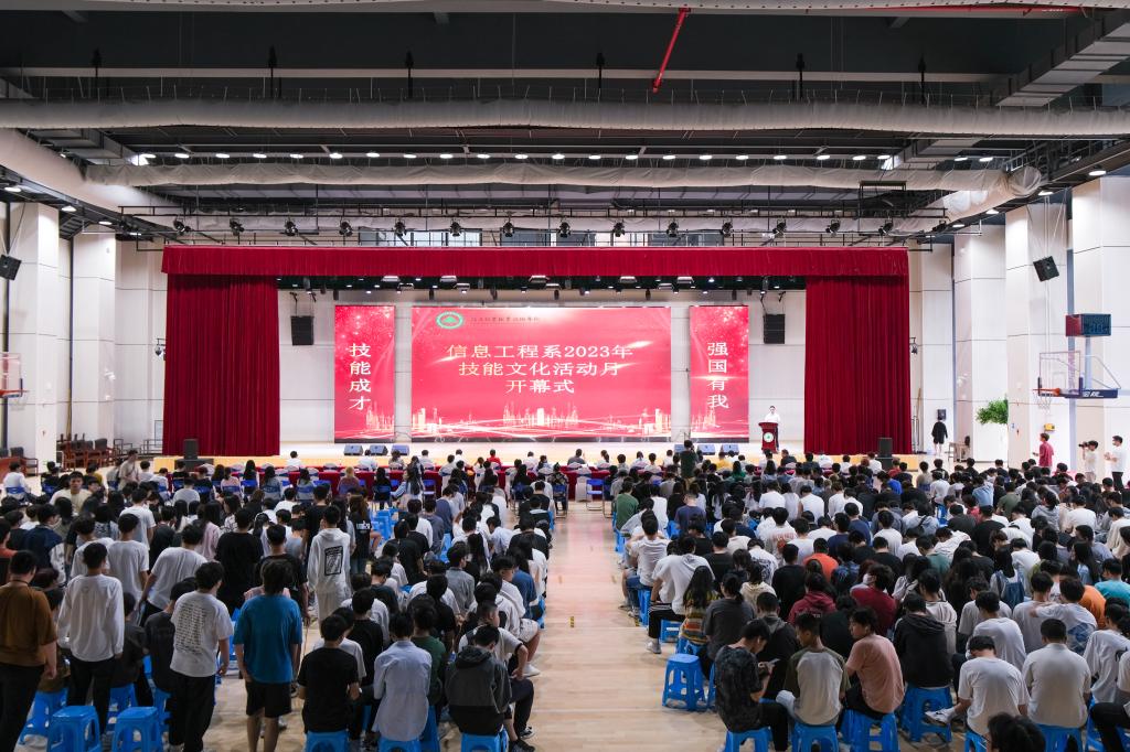 为了深入学习贯彻党的二十大精神,落实立德树人根本任务,进一步打造以“工匠精神”为核心的校园技能文化品牌,彰显职业教育魅力,展示学生扎实娴熟专业技能及良好的素质,夯实技能基础,提升专业素养,锻造工匠品质。根据《福建林业职业技术学院关于印发2023年度“技能文化活动月”实施方案的通知》,2023年5月23日下午,信息工程系2023年技能文化活动月开幕式在江南体育馆隆重举行。副院长谢金生、院学生部部长蔡敏、院团委副书记雷栩艺、系主任华建祥、党总支副书记(主持工作)叶文美、专职组织员谢婉欣、学生科科长兼团总支书记吴文杰、教学科科长蔡尊煌、学工组全体专职辅导员、各赛项指导教师以及系参赛参会学生共计700余人参加开幕式。开幕式由系学生科科长兼团总支书记吴文杰主持。