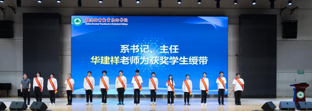 由系书记、主任华建祥老师为获奖学生绶带。