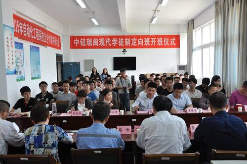 2017年4月20日下午,我系圆满举办中铝瑞闽“现代学徒制”定向培养班开班仪式。本次定向培养班,共有2015级、2016级机械制造与自动化、模具设计制造、机电一体化、数控设备应用与维护专业8个班57名学员。他们将在完成学业后,加入中铝瑞闽股份有限公司。