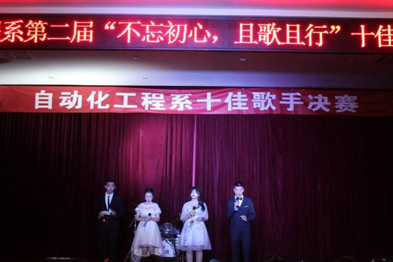 5月10日晚7:30,由自动化工程系文娱部举办的第二届“不忘初心,且歌且行”十佳歌手大赛于江南大礼堂圆满落下帷幕!本次比赛由辅导员叶文美、谢婉欣、王辉,教师叶熙领以及两委会学生干部担任评委。比赛共有两轮组成,第一轮半决赛,每名选手演唱一首曲目,得分最高的前三位进入第二轮的决赛,争夺冠、亚、季军头衔。