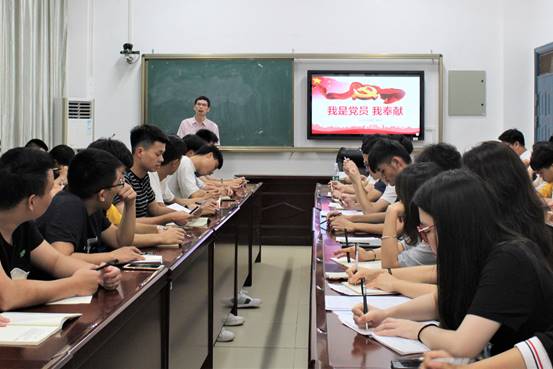 为了深入学习贯彻党的十九大精神,认真落实新时代党的建设总要求,提升系部学生党员的发展质量,系党总支将党课学习制度常态化作为强化标杆院系建设的重要指标,积极推进全省党建标杆院系建设,5月20日晚上7点,系党总支副书记、系主任谢金生在实训三408为全体17级预备党员上了《我是党员,我奉献》专题党课。