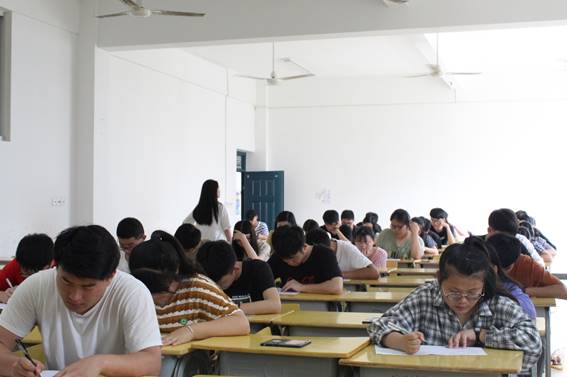 竞赛开始前我系组织部和宿管部的工作人员提前到达赛场,进行准备工作,12:40当赛场工作人员宣布知识竞赛开始后,每位参赛选手开始认真地答题,整场活动过程中场内工作人员尽职尽责监考,场外工作人员维护着教室外的环境,确保参赛选手不受外界因素打扰。